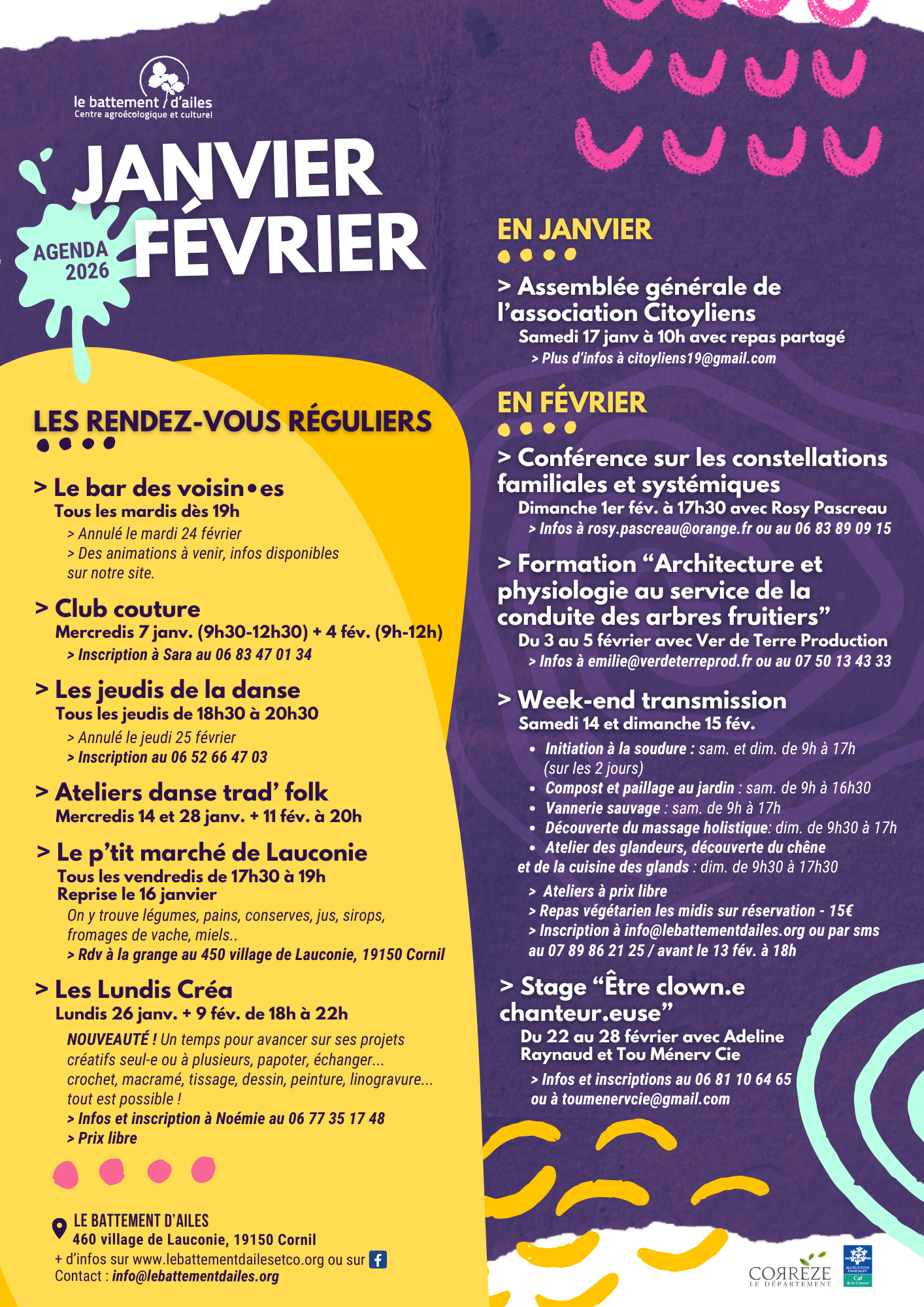 Voici l’agenda pour les 2 prochains mois, n’hésitez pas à le consulter et à même le télécharger et à l’imprimer pour le mettre sur votre frigo ! À bientôt sur la colline !