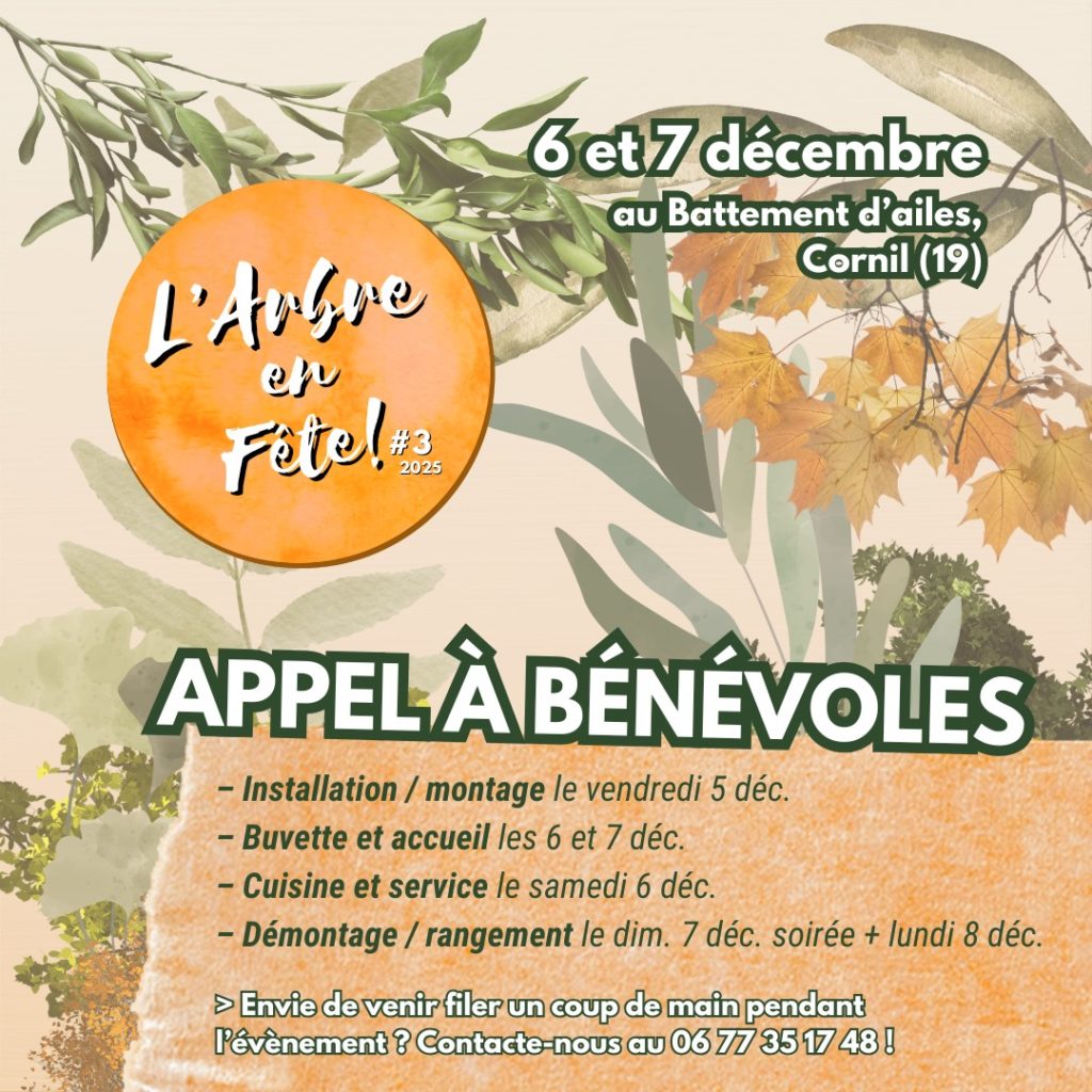 « L’Arbre en Fête » revient pour sa 3ème édition les samedi 6 et dimanche 7 décembre 2025 au Battement d’ailes à Cornil, en Corrèze (19). Cet évènement est organisé par le CIVAM SAEL, la Pépinière Le Poèmier et le Battement d’ailes.